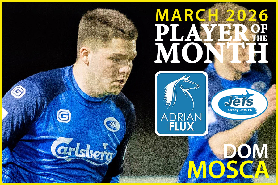 Dom Mosca was Jets’ top performer and this month’s Adrian Flux Insurance Player of the Month with Man of the Match performances against London Samurai and Holmer Green, and another excellent performance against Deportivo. Dom scored the decisive goal in the 1-0 win away at London Samurai, where his play was described as “awesome from start to finish”, and also scored against Spartans and Chalfont.